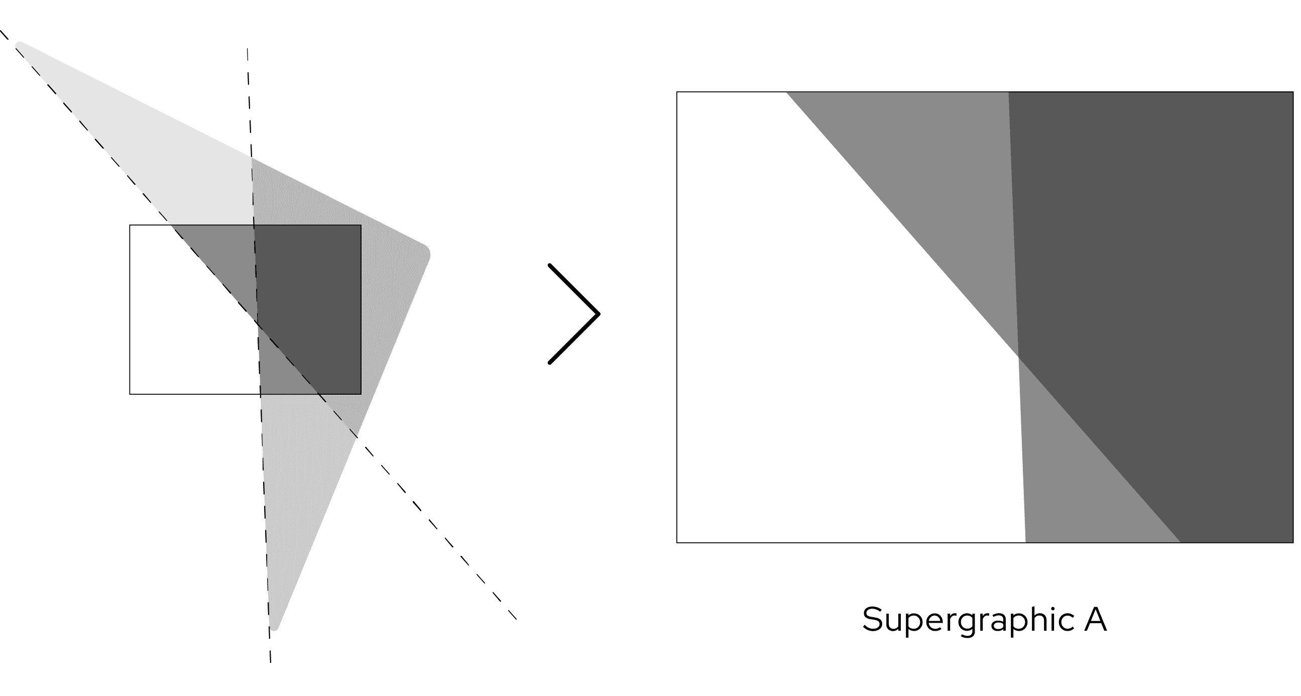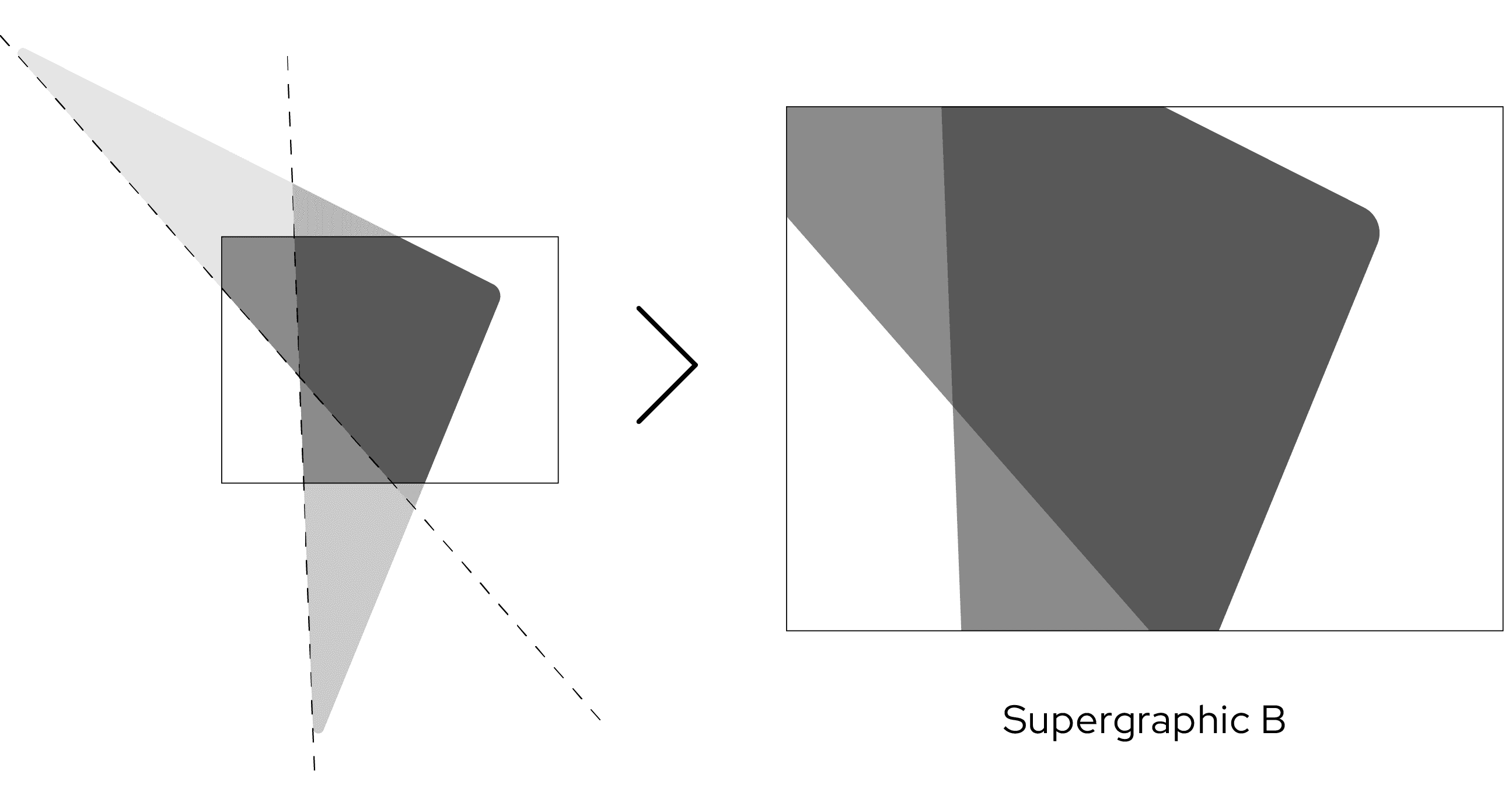 A two-part supergraphic system, both derived from the logo, brings the identity to life across a multitude of touchpoints. One version supports clean, structured layouts; the other uses the tip of the symbol to highlight bylines and key messaging. This visual language ensures the brand remains distinctive and adaptable across print, digital and physical environments.