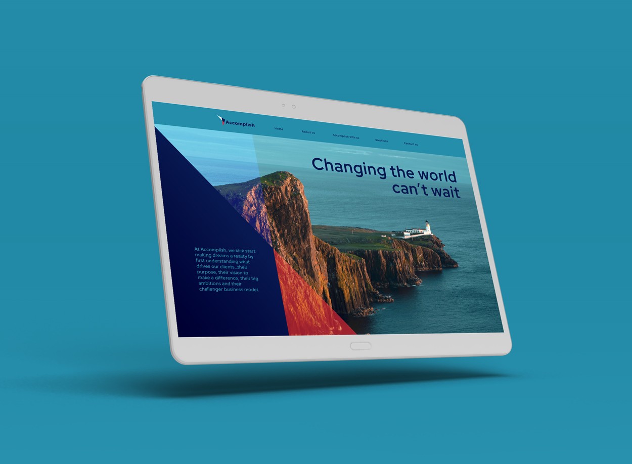 We built a bold, flexible identity that reflects Accomplish’s dual role: delivering advanced payment tech while supporting the growth of its clients. The logo features a greater than symbol placed before the wordmark, reinforcing the idea of always backing the client. A vivid palette of red, navy and aqua gives the brand instant visibility with a confident, professional tone.