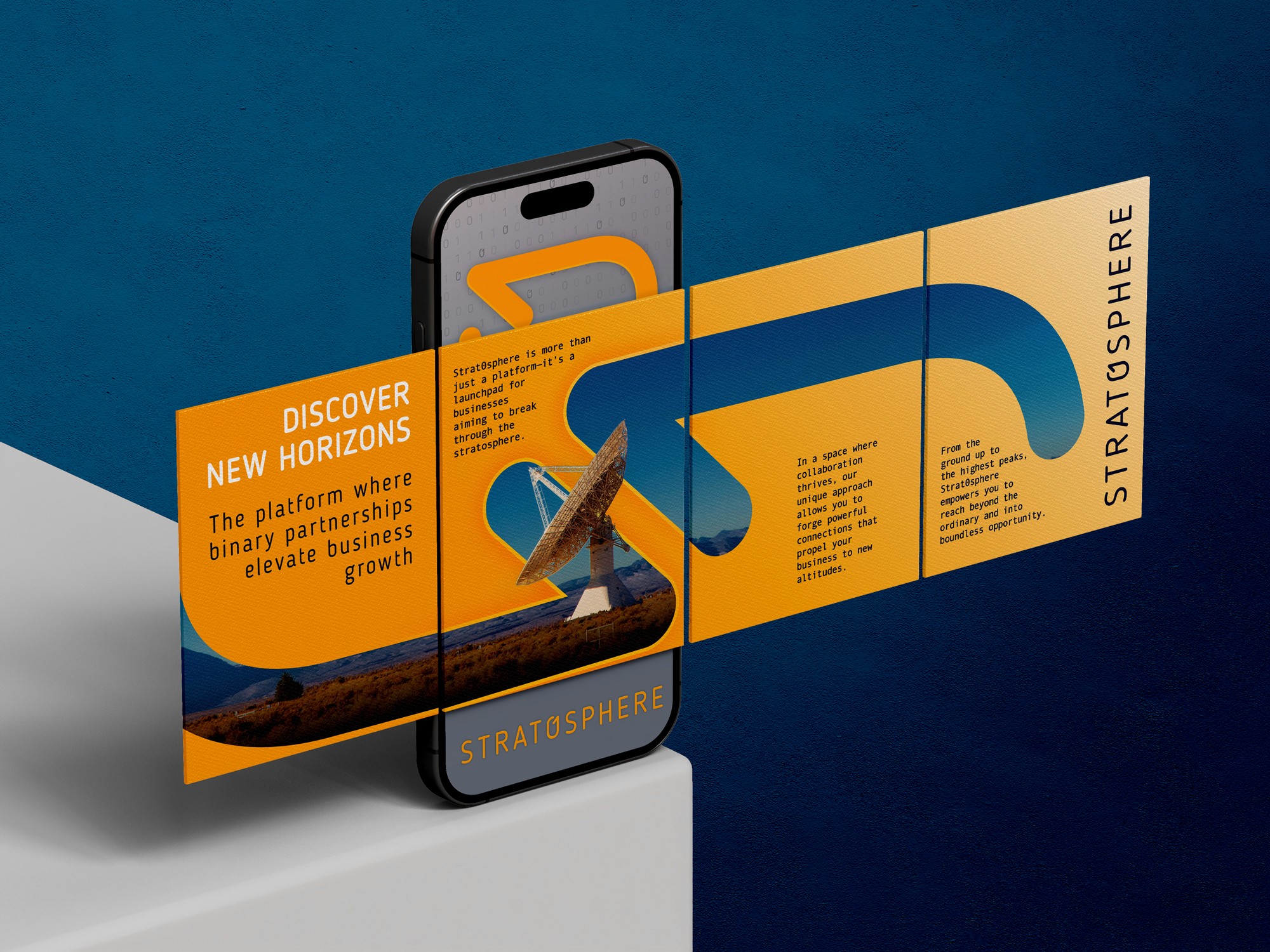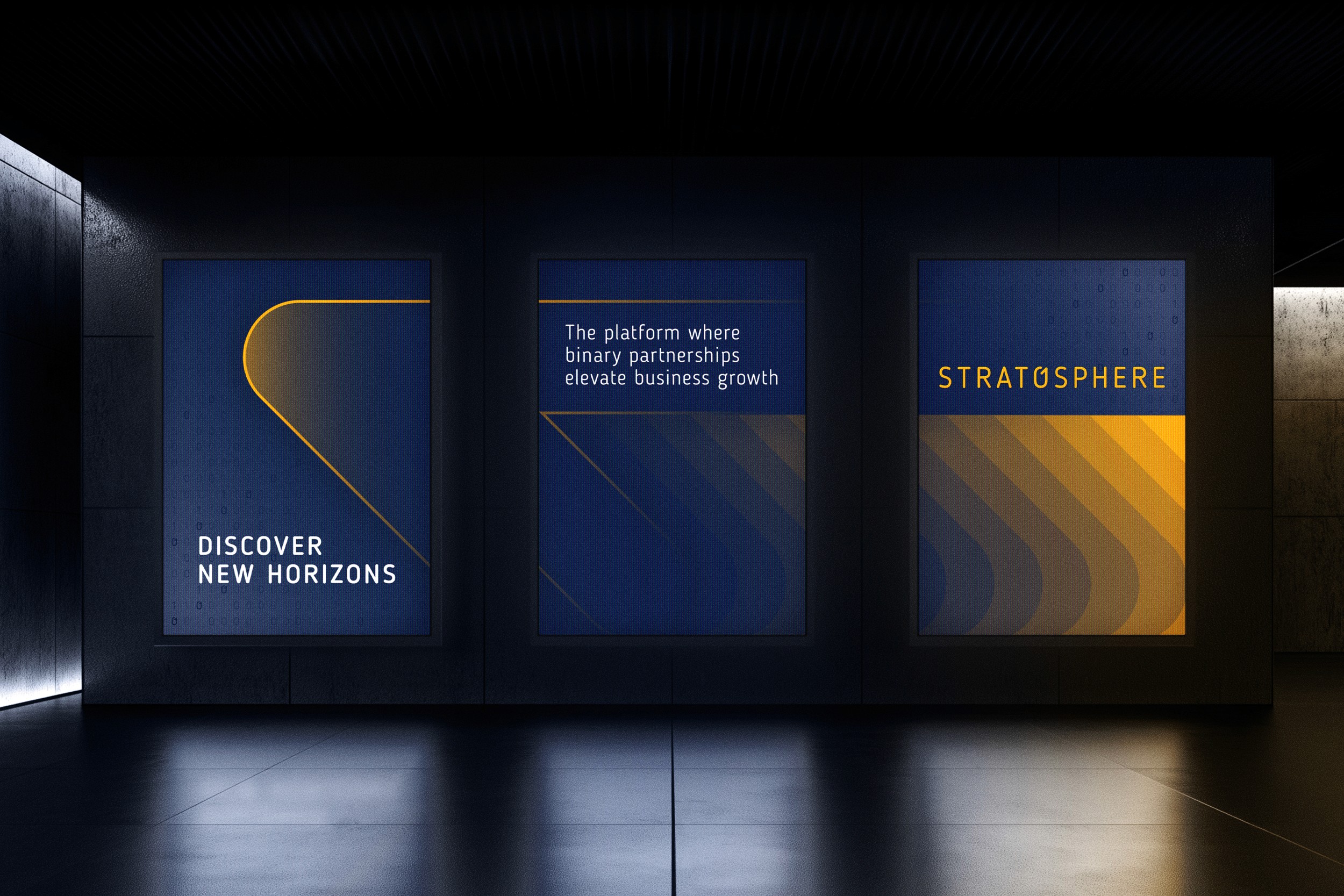 We developed a clean, modular identity inspired by the platform’s binary foundations, a system built around connection, clarity and digital fluency. The logotype features a custom “0” that nods to binary code, representing the one-to-one partnerships the platform was built to foster. A bold palette of deep navy and solar yellow conveys trust, energy and momentum, while curved forms suggest altitude and lift.